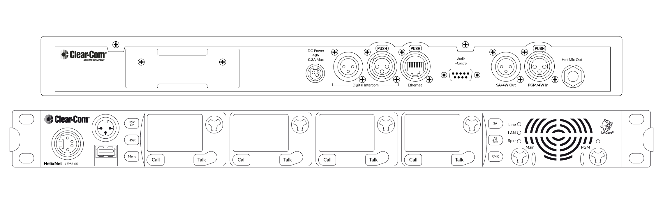 Intercom Line: (1) 3-pin XLR-M, (1) 3-pin XLR-F